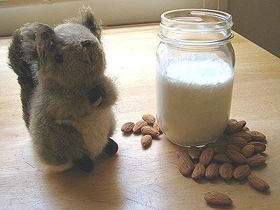 What you end up with is the pulverized almonds at the bottom of the blender and the water having been turned into a rich milk. *You don’t have to throw the nuts out. We’ll return to this in a minute.